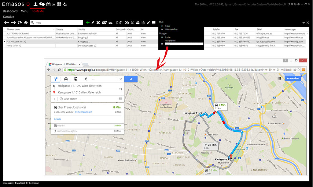 Kontakt mit Google Maps Routenplanung