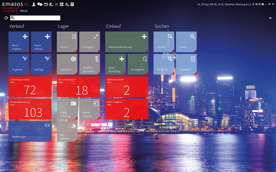 Effizienz ist auch eine Frage optimaler Usability. Deshalb haben wir bei Emasos IQ das zeitaufwändige Durchklicken durch das One-Click-Prinzip ersetzt. Mit einem Klick zu den gewünschten Daten und Prozessen, here we are!